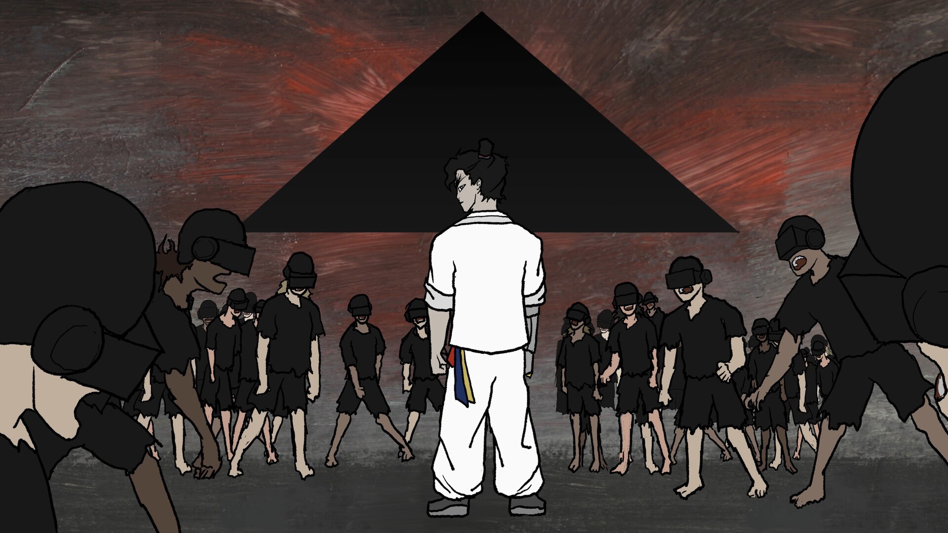 This film revisits a popular motif in Korean cinema and pop-culture – a zombie apocalypse, where the protagonist manages to escape the catastrophe and is challanged to an uneven fight with the evil. In this case, it's some sort of artificial intelligence, that is the disease, taking the form of a dark pyramid, which is hovering above ruined land - an all controlling system, which manipulates humans with the use of technology.