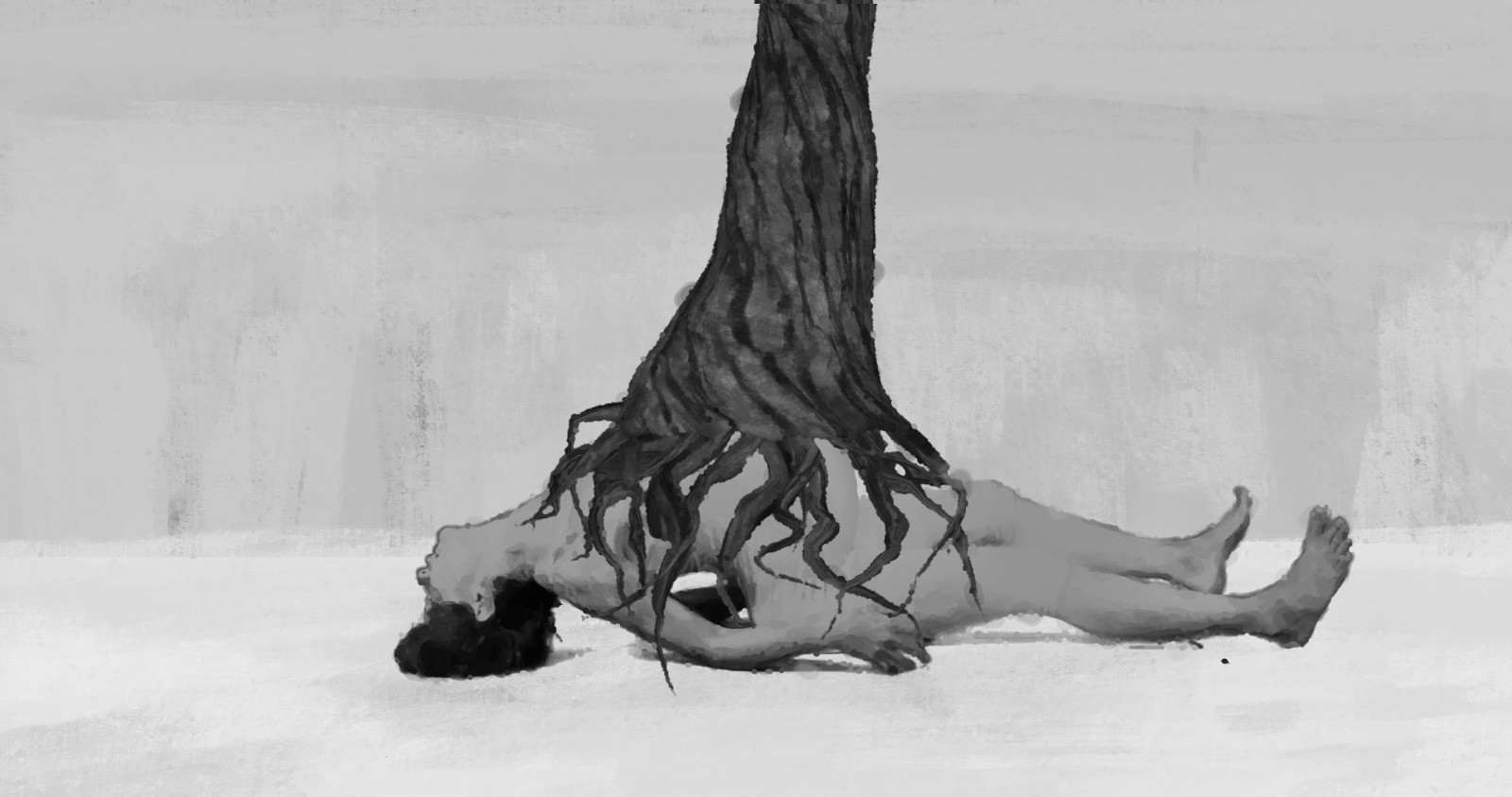 And this is my body is a film, which 'grows' out of a painting, but what starts as a calm, idyllic vision turns into the opposite, of what we see at the beginning. A woman lies on the ground with a tree coming out of her ear. .....FULL REVIEW